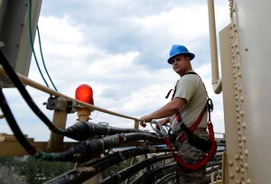 U.S. Army Pfc. Matthew Brokaw, U.S. Army Central Command culinary specialist, places a beef brisket into an oven at Shaw Air Force Base, S.C., March 17, 2016. The Chief Master Sgt. Emerson E. Williams Dining Facility staff spend close to three hours every day preparing lunch. (U.S. Air Force photo