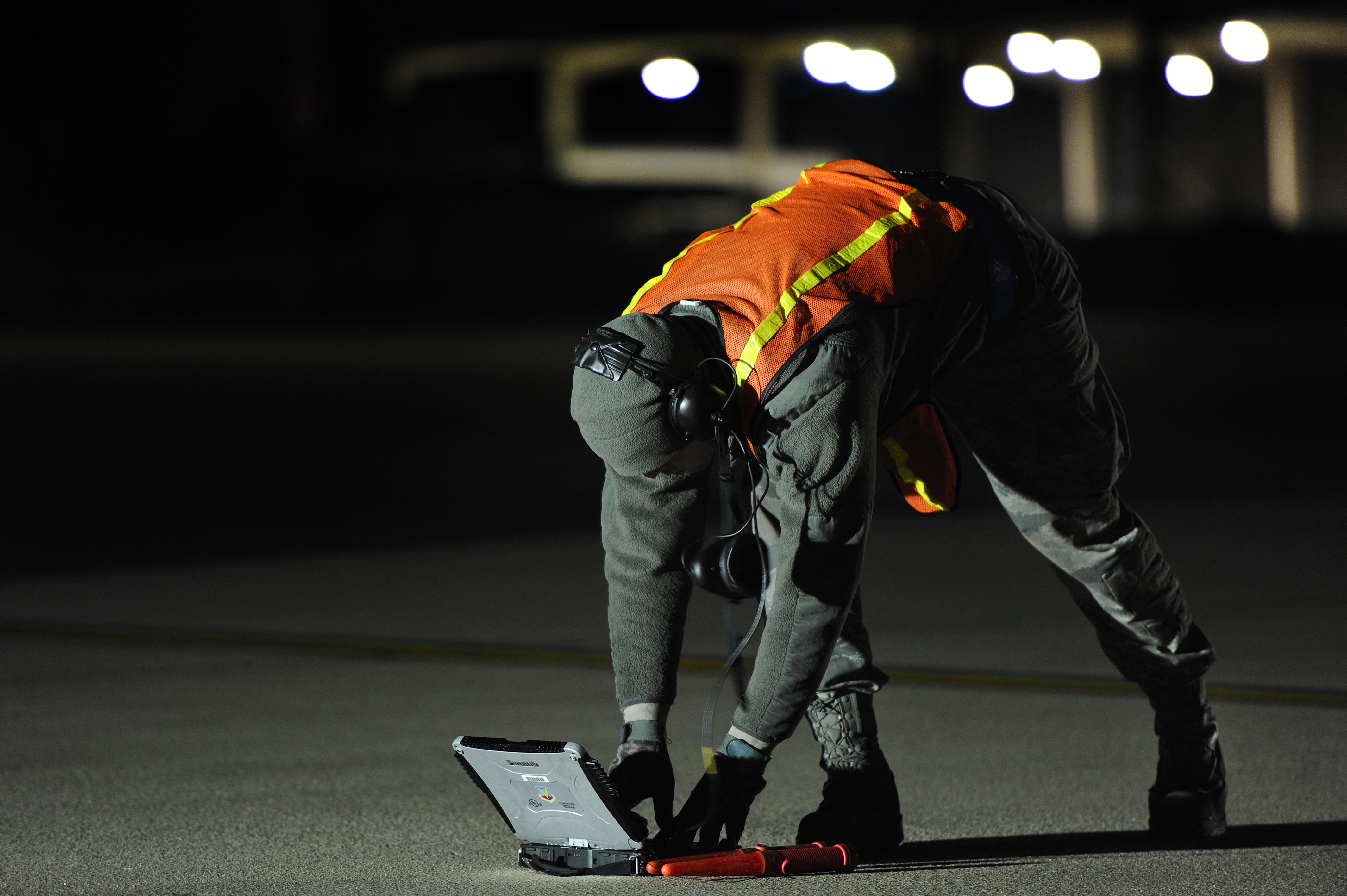 U.S. Air Force Senior Airman Aaron Simonson, 20th Aircraft Maintenance Squadron crew chief, marshals 1st Lt. Josh Reddis, F-16 Fighting Falcon pilot, into the hot pit in order for Reddis jet to be refueled, Nov. 8, 2012, Shaw Air Force Base, S.C. Hot pit refueling is a procedure usually performed in a combat situation to rapidly refuel aircraft while their engines are running, resulting in a speedy refuel to thrust pilots right back into the fight. Refueling specialists, crew chiefs and pilots assigned to the 20th Fighter Wing practice this procedure to keep their skills sharp and aid in the effort to provide combat-ready air power at a moment’s notice. (U.S. Air Force photo by Staff Sgt. Kenny Holston/Released)